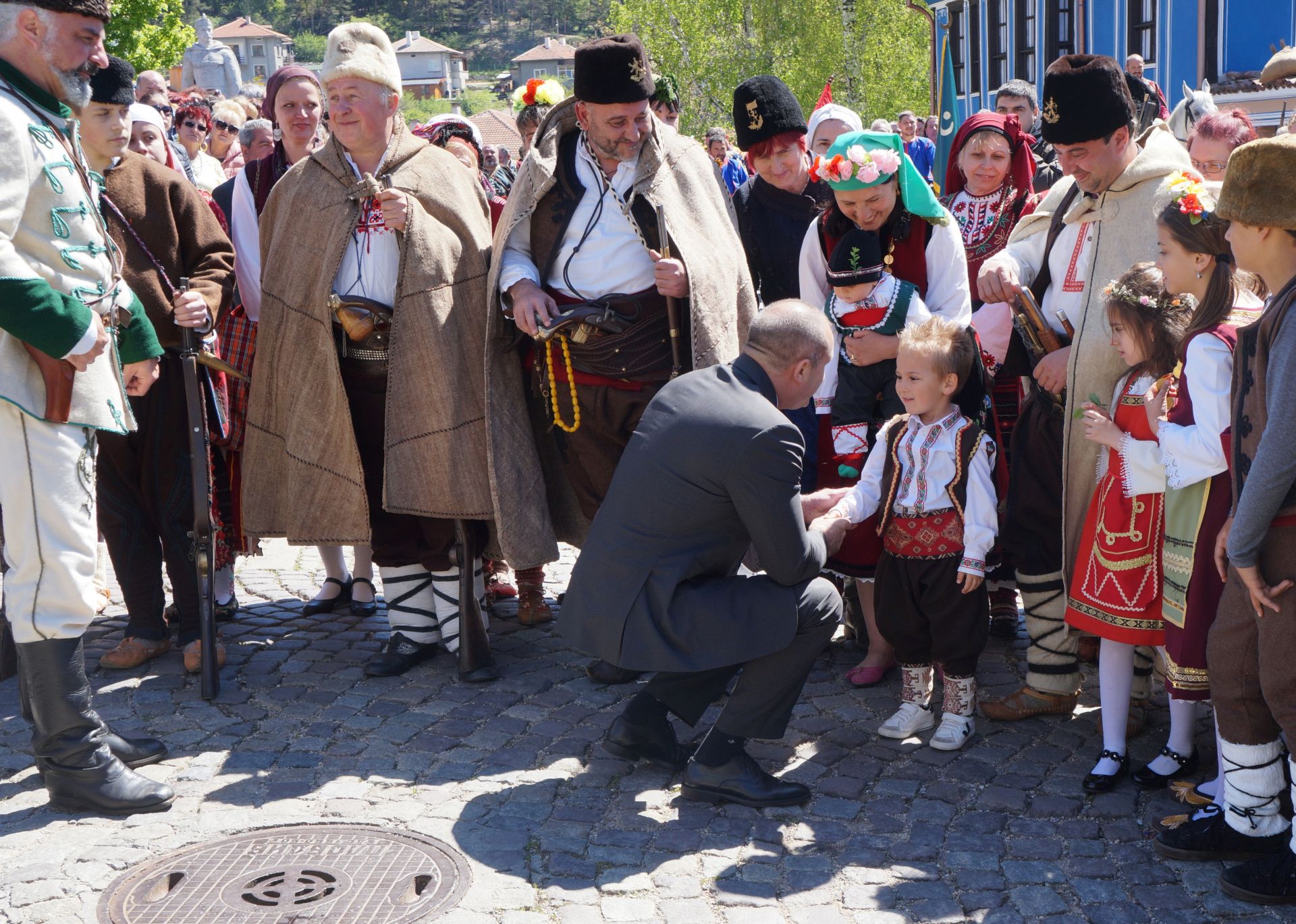 Държавният глава поздрави персонално всички участници във възстановката, като им благодари, че пресъздават славата и величието на онези дни и така пренасят този завет на дедите ни от поколение на поколение. "Докато ви има вас, докато децата ви растат с възстановките, с българските песни и възрожденския дух, безродниците няма да затрият нашата история. А народ без минало няма и история, и затова сме длъжни да помним", каза Румен Радев.