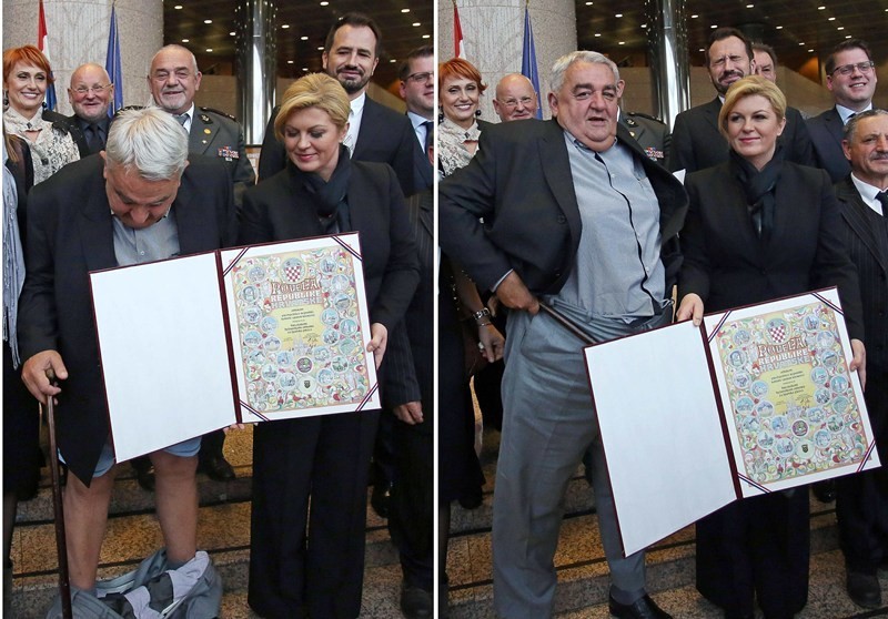 Панталонът на шефа на хърватския Хелзинкски комитет Иван Звонимир Чичак се изу, докато позираше до президентката Колинда Грабар-Китарович с наградата му по случай днешния световен Ден на човешките права, предаде Труд.