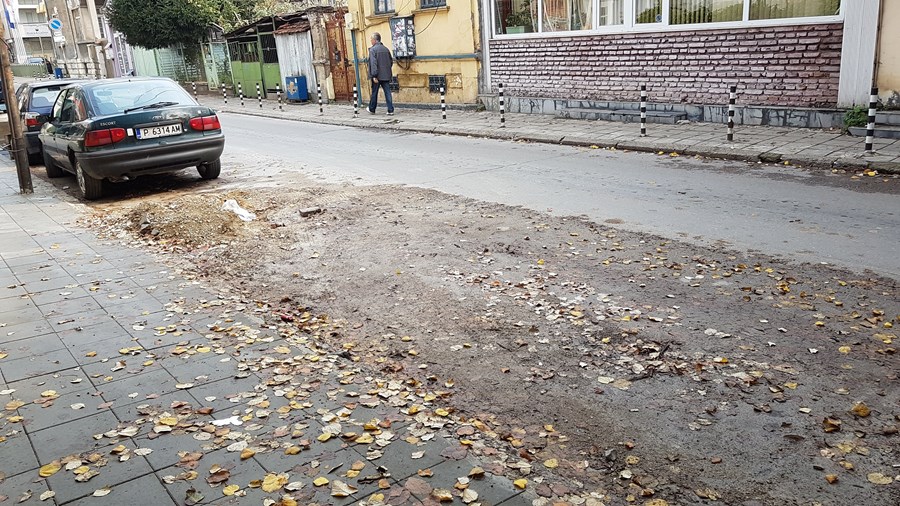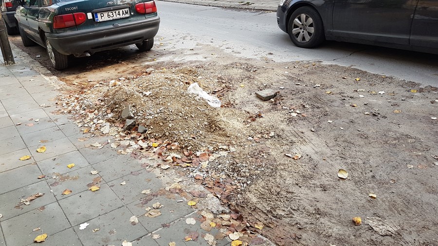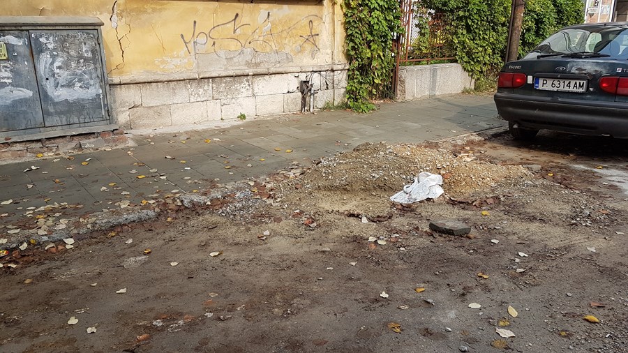 Направиха някакъв бърз ремонт за да си оправдаят усвоените пари и изчезнаха. Но мизерията и боклуците след тях останаха. Снимките са от улица "Хан Аспарух", а мизерията и камарата с пясък е собственост на община Русе.