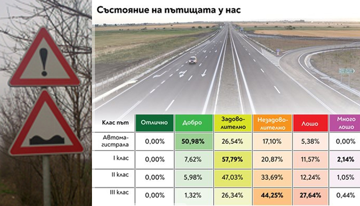 В национален мащаб ситуацията е още по-стряскаща – в България няма нито един километър път, който да отговаря на критериите за "отлично състояние". Класификацията, базирана на безопасността за движение, не намира място дори за магистралите в графата "отлични".
