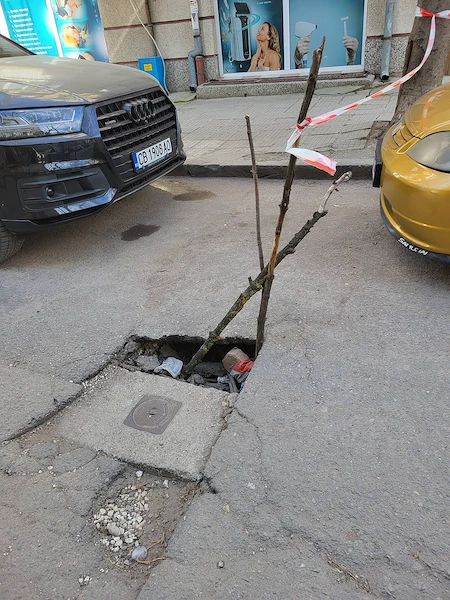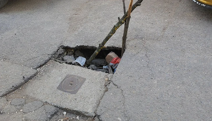 Докато Община Русе се активизира да ремонтира опасния участък, шофьорите, преминаващи по улица "Давид", трябва да бъдат изключително внимателни и да разчитат на импровизираната сигнализация от клони, за да спасят автомобилите си от сериозни повреди.