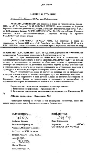 Договорите да подписани на 9 февруари 2017 г., когато управляваше служебното правителство на Огнян Герджиков, назначено от сегашния президент Румен Радев, от зам.-директора на митниците Борислав Борисов и управителя на фирмата Иван Владимиров..