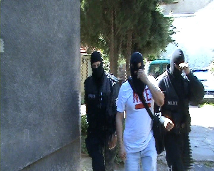 Пресцентърът на ДАНС разпространи снимков материал от задържането на Венцислав Ангелов в Русе. Кадрите показват как т.нар. качулки извеждат от дома му 45-годишният мъж.