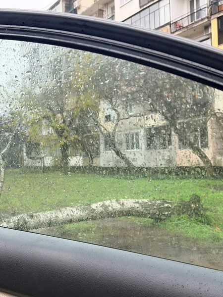 От споделените снимки става ясно, че масивното дърво е паднало директно върху поне два леки автомобила, намиращи се в непосредствена близост до гаражните клетки. Районът около колите е силно разкалян и пълен с локви вследствие на валежите от последните часове.