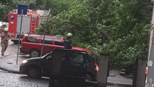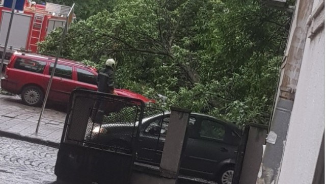 Паднали клони потрошиха три автомобила в центъра на Пловдив