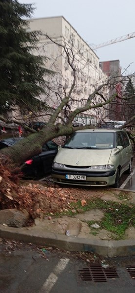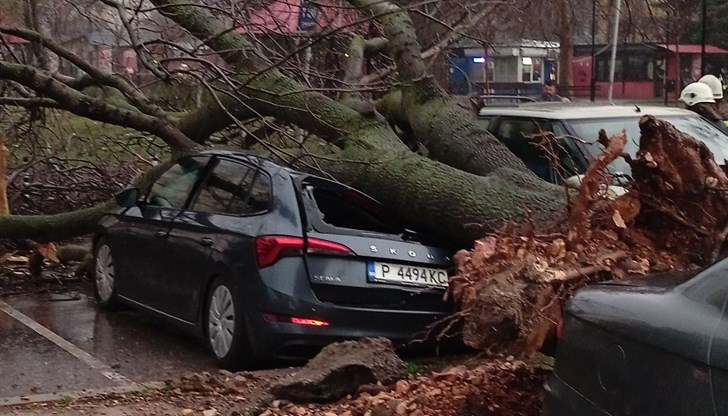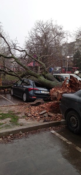 "Силната буря изкорени дърво пред УМБАЛ Медика. Има щети на паркирани автомобили. Минавали са хора, но са останали под тънките клони", написа Малчев в публикацията си във Фейсбук групата "Обществен съвет Русе".