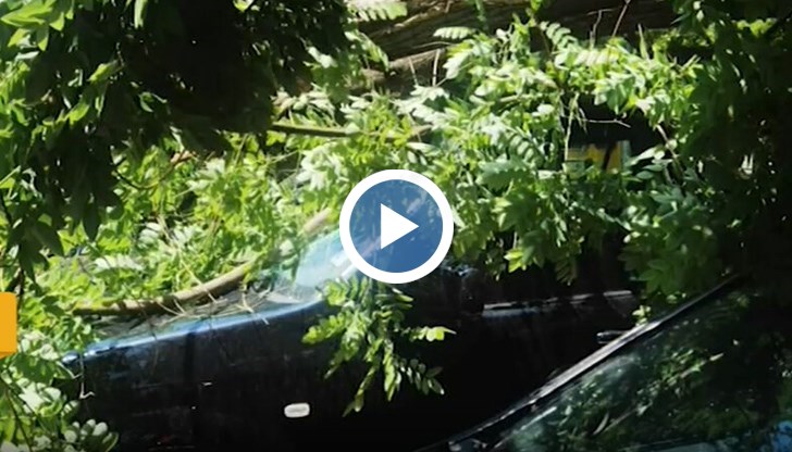 Дърво се разцепи на две и се стовари върху паркирани коли пред жилищен блок в Пловдив, предаде NOVA