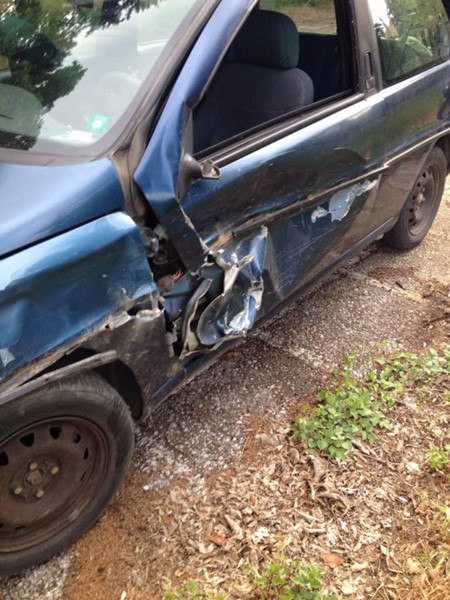 Резултат: удря първия моторист странично. Ударът щеше да е челен, ако той не беше направил маневра в опит да избяга. Водачът на Lancia-та беше жена и до последно навлизаше в насрещното за нея платно /към нас/, дори и след като съм сигурна, че ни видя. След удара колата не спря веднага, а подмина кръстовището и по някое време отби встрани на пътя (явно реши да бяга, после се уплаши, че колата й е счупена и в крайна сметка спря).