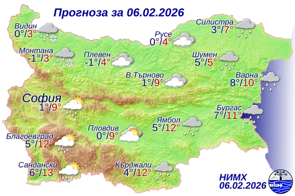 България ще се окаже разделена на две климатични зони днес, 6 февруари 2026 година, като температурите ще варират в екстремен диапазон от минус 2 до 15 градуса. Докато Южна България ще се радва на почти пролетно време, в северозападните райони остават критични условия за поледици, съобщиха от Националния институт по метеорология и хидрология (НИМХ).