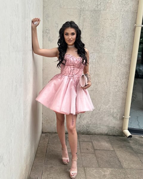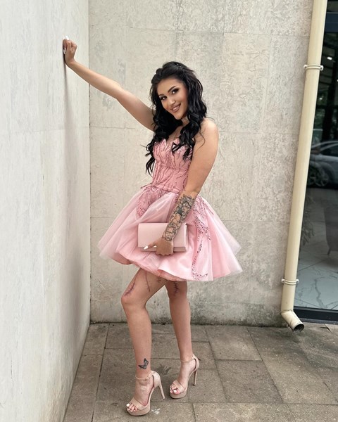 На снимките, споделени в социалните мрежи, Дебора е облечена в прелестна розова рокля, която подчертава нейната увереност и красота. Тя е комбинирала тоалета си с елегантни високи обувки и лъскави бижута, завършвайки визията си с лъчезарна усмивка, която олицетворява нейната вътрешна сила и оптимизъм.