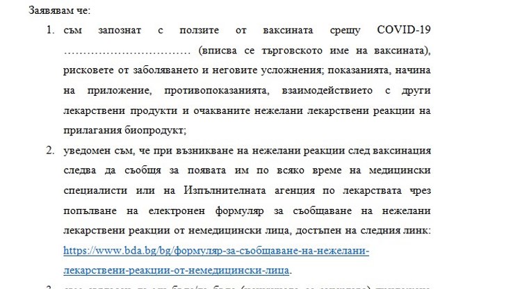 Декларацията за информирано съгласие на ваксината срещу КОВИД-19 с неясноти