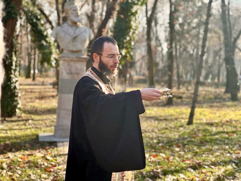 Протойерей Кирил Синев от Българската патриаршия в Букурещ отслужи заупокойна молитва. В церемонията взеха участие представители на Народно читалище "Христо Ботев" - Русе и ученици от българското неделно училище "Йордан Йовков" към посолството, водени от директора Надежда Кула. Присъстваха също членове на Демократичния съюз на българите в Румъния и Федерацията на българската общност.