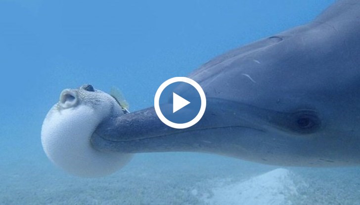 Невероятни кадри, заснети от BBC, показват как делфини си играят с риба балон и се дрогират, поемайки от токсина на рибата.