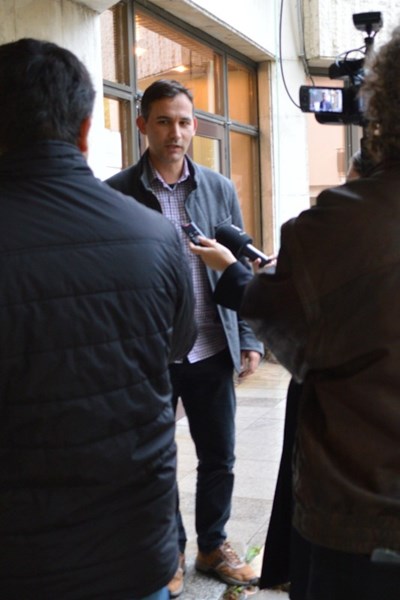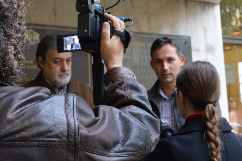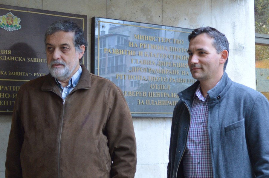*На снимките Евгени Харалампиев (ДСБ) и Иван Белчев (Да, България) регистрират листата на "Демократична България" в РИК - Русе.