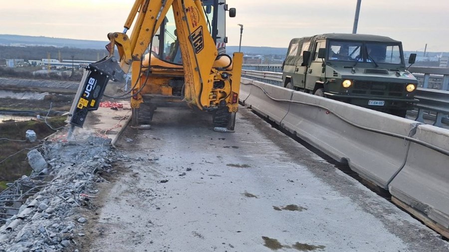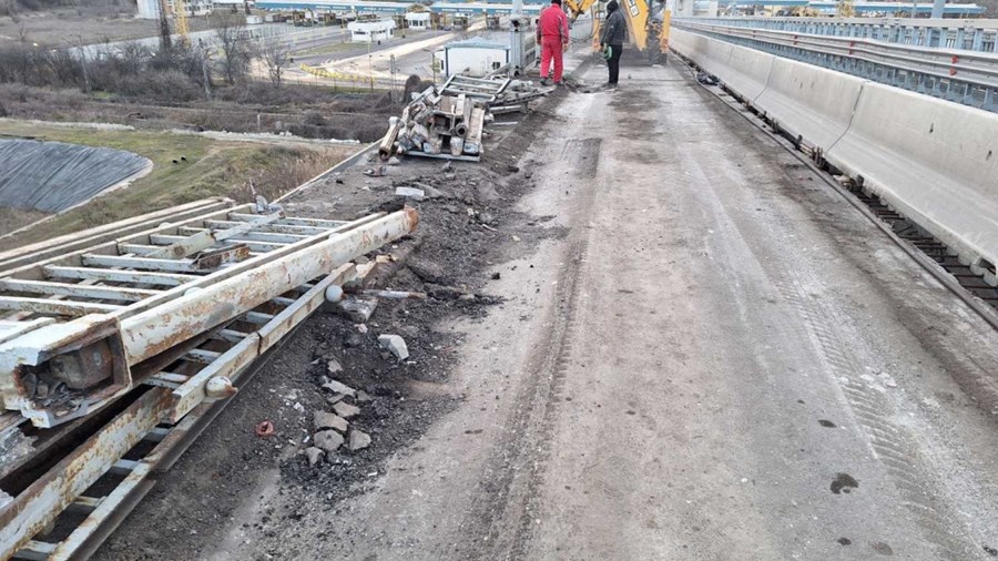 В момента екипите работят по демонтажа на ограничителните системи, осветителните стълбове и пешеходния парапет в платното към Румъния, съобщиха от Агенция "Пътна инфраструктура".