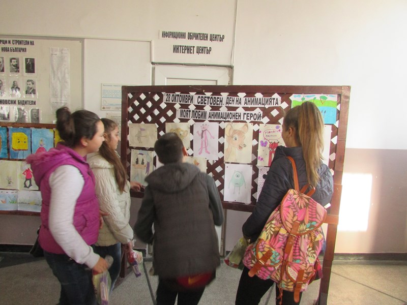 Участниците в срещата с интерес разгледаха изложбата от рисунки на любими герои от анимационни филми. Учениците разказаха и любопитни моменти, свързани със създаването и историята на своите любимци. Макар и пораснали момичетата и момчетата споделиха, че дълбоко в себе си все още пазят незабравими спомени от първите си срещи с любимците от книжките и филмите, които са гледали.