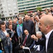 Шоуменът Слави Трифонов седна за шести пореден ден пред парламента с искане за промени в Изборния кодекс, които получиха одобрение на референдума.