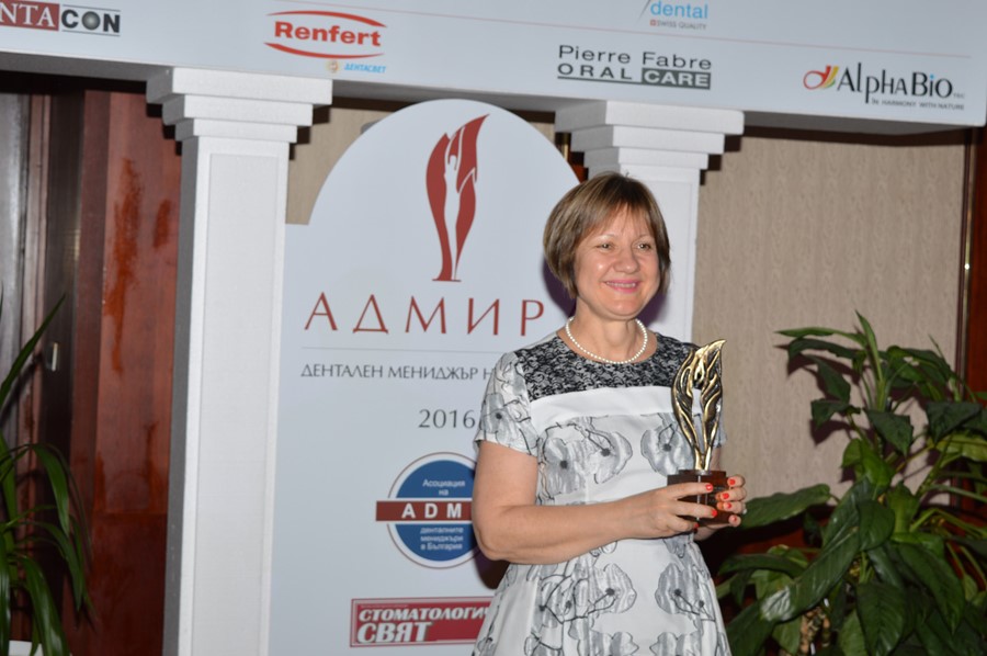 С голямата награда „Дентален мениджър на годината“ и статуетката „Адмира“ бе отличена д-р Мария Сапункьова, мениджър на дентална клиника „Дукови“, Русе. Статуетката и плакетът бяха връчени от Иван Иванов, зам.-председател на парламента, в присъствието на миналогодишните победители - д-р Радослав Таков и д-р Станимир Банчев, дентална клиника „ПТБ дентал“ – с. Телиш.