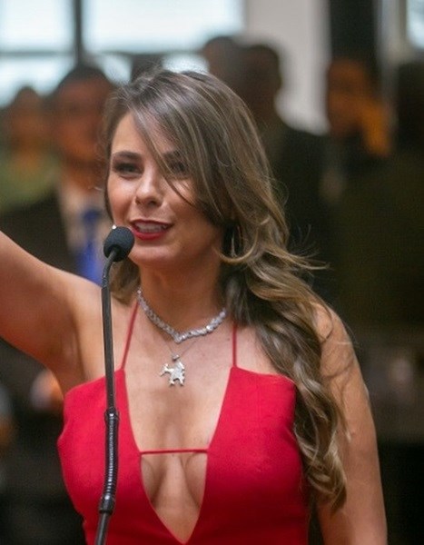 Бразилският депутат Ана Паула да Силва събра очите на всички с провокативния си тоалет по време на встъпването си в длъжност. Жената политик се появи в залата за заседания в бразилския парламент в яркочервен костюм с дълбоко деколте, което изложи на показ пищните ѝ форми.