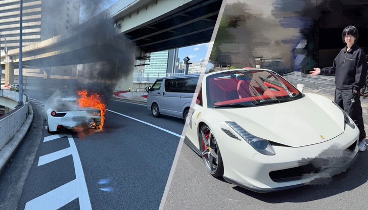 Мечтата на 33-годишен японец се превърна в кошмар, след като новозакупеното му Ferrari 458 Spider на стойност 43 милиона йени (около 266 хиляди евро) изгоря напълно само час след покупката.