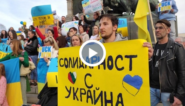 Хората издигнаха плакати срещу военната агресия на Русия и развяха украински и български знамена.