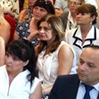 Тя присъства и на среща с българите в Гърция, където отново заложи на семплата визия бе избрала бяла блуза и широки, летни панталони.