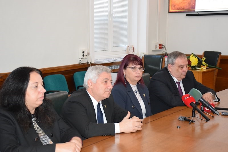 Досегашният ректор професор доктор инженер Генчо Попов официално предаде ректорските символи на своя наследник - огърлицата, жезъла, пръстена и символичния ключ на университета.