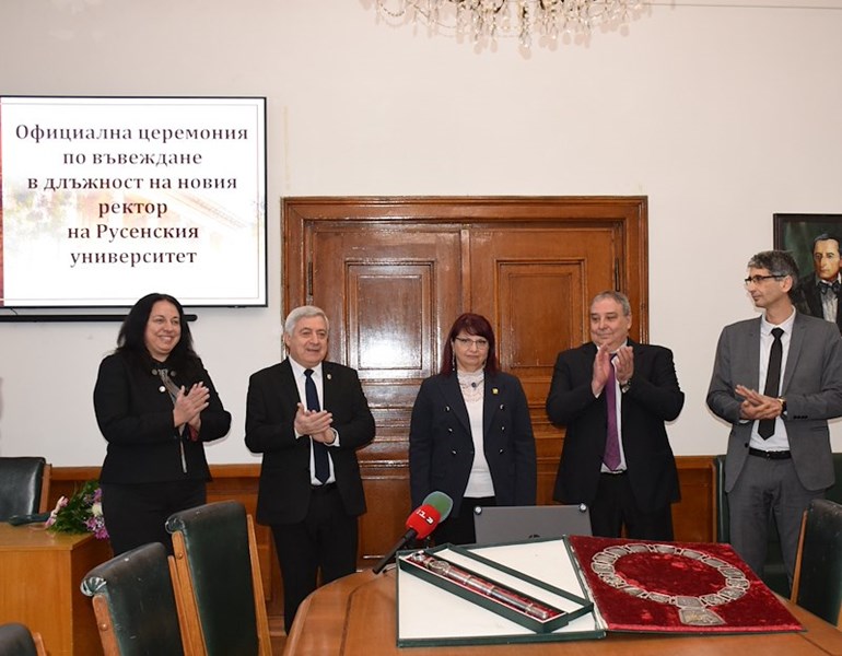 В заседателната зала на Ректората на Русенския университет "Ангел Кънчев" се проведе официалната церемония по встъпване в длъжност на новия ректор доцент доктор Десислава Атанасова, съобщиха от пресцентъра на висшето училище.