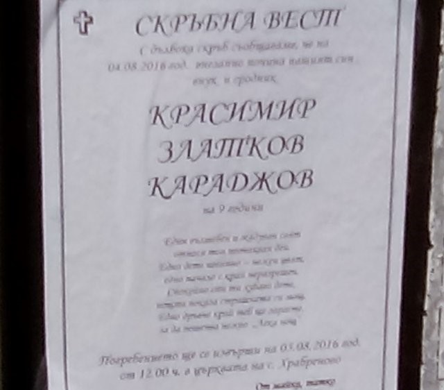 Храбрино почерня! Такава трагедия не се е случвала. Много е страшно и много е жалко 9-годишно дете да загине по този нелеп начин. Жалко за детенцето.