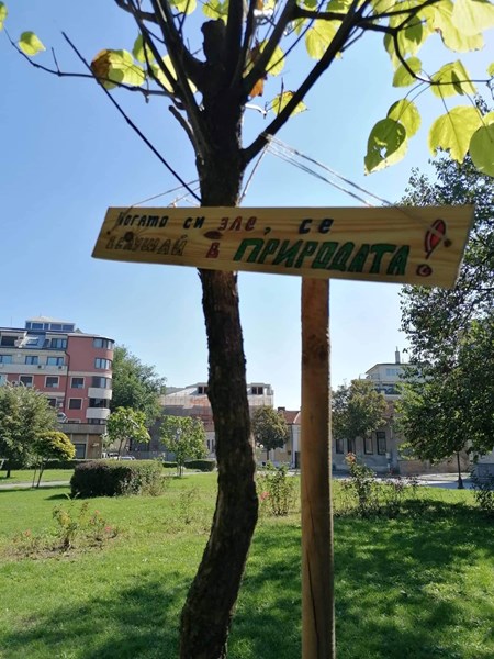 Благодарение на творческия ентусиазъм на нашите малки художници, успяхме да превърнем пространството около РБ „Любен Каравелов“ в истинска горска еко пътека. По нея „пътешествениците“, можеха да срещнат, макар и през деня множество красиви бухали, направени от прежда, хитра лисица, „издялана“ от естествен корен, цял плаж от изящно изрисувани мидички и още много и много детски ръце вплетени в защита на природата – Живот.