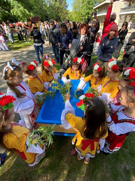 Деца от трета и четвърта група в ДГ "Зора" в Русе пресъздадоха пролетни български обичаи с много усмивки, настроение и автентични народни носии. Малките възпитаници на детската градина представиха традиционни ритуали, свързани с Лазаровден, Цветница и Гергьовден.