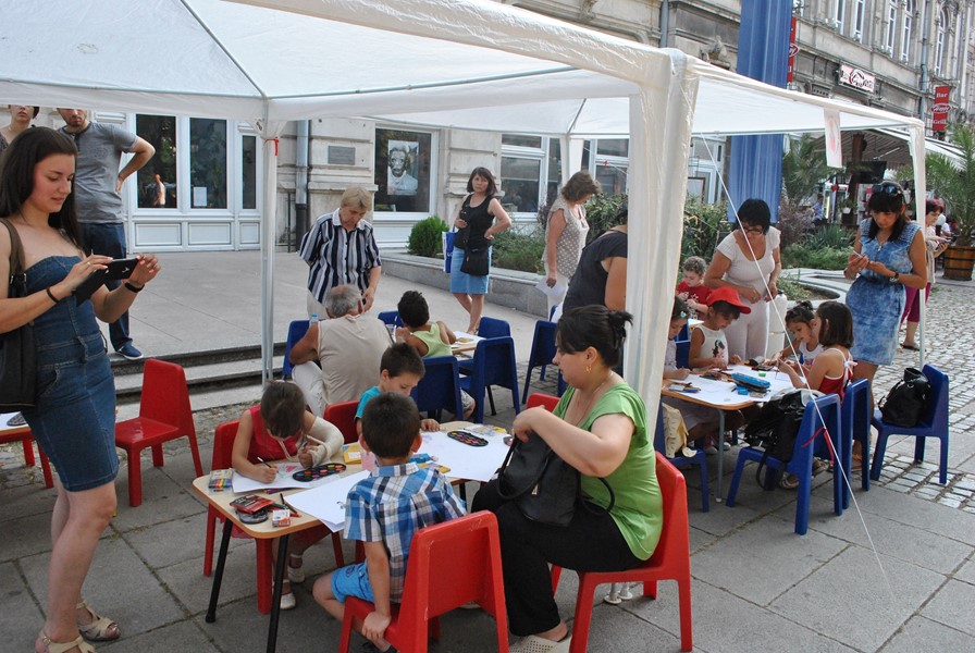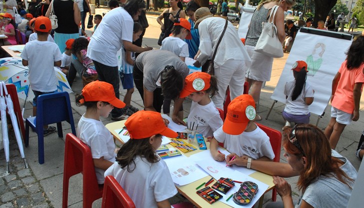 Пленер за малки художници, в който участваха 80 деца от пет детски градини, се проведе вчера пред Доходното здание.