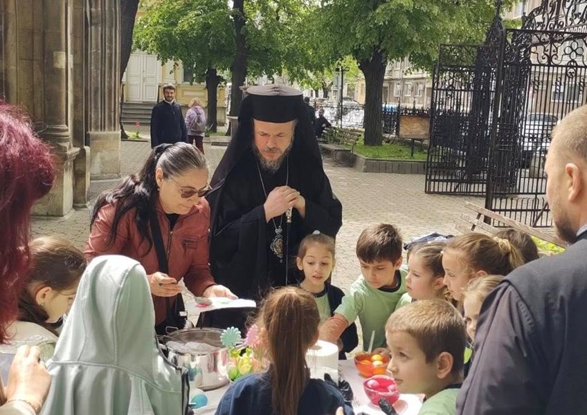 Деца от Русе боядисаха великденски яйца с епископ Макарий