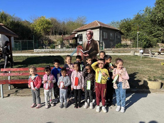 В празничния ден възпитаници на Детска градина "Радост“ посетиха библиотеката на читалището. Малките палавници предварително бяха подготвили книгоразделители. На тънката ивица беше поставен образа на Паисий Хилендарски на фона на българския трибагреник. Малките момичета и момчета рисуваха образите Христо Ботев, Васил Левски, Захари Стоянов, Алеко Константинов и Иван Вазов.
