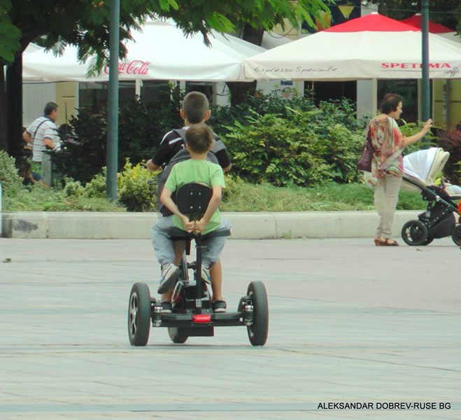 "Ужас!!! Малолетни между 5 и 8, 9 години на тези ЕЛЕКТРИЧЕСКИ ТРИКОЛКИ, ПРЕПУСКАТ С 30-40 КМ В ЧАС по пешеходната зона в центъра на град Русе!