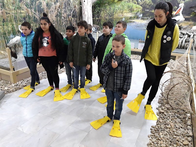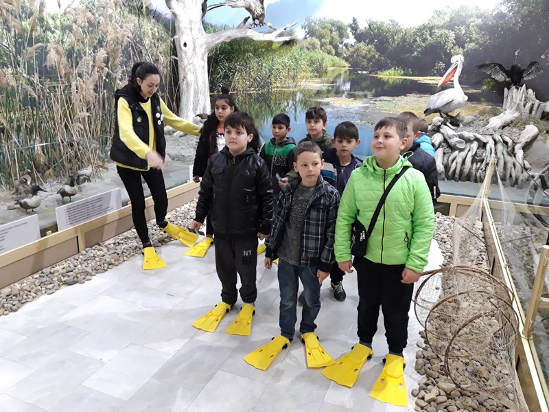 В зала „Блатна екосистема“ на музея децата се запознаха с водолюбивите птици по река Дунав като ги разграничаваха на водоплаващи и водогазещи. С помощта на музейните педагози Магдалена Трифонова и Виктория Друмева, учениците от ОУ „Ангел Кънчев“ разбраха повече за местообитанията, начина на придвижване и храненето им. В интерактивни кутии момчетата и момичетата трябваше да разпознават крака на водоплаващи и водогазещи птици по предварително изготвени макети. В последната игра учениците сложиха плавници и кокили, за да усетят как се придвижват пернатите в пространството.