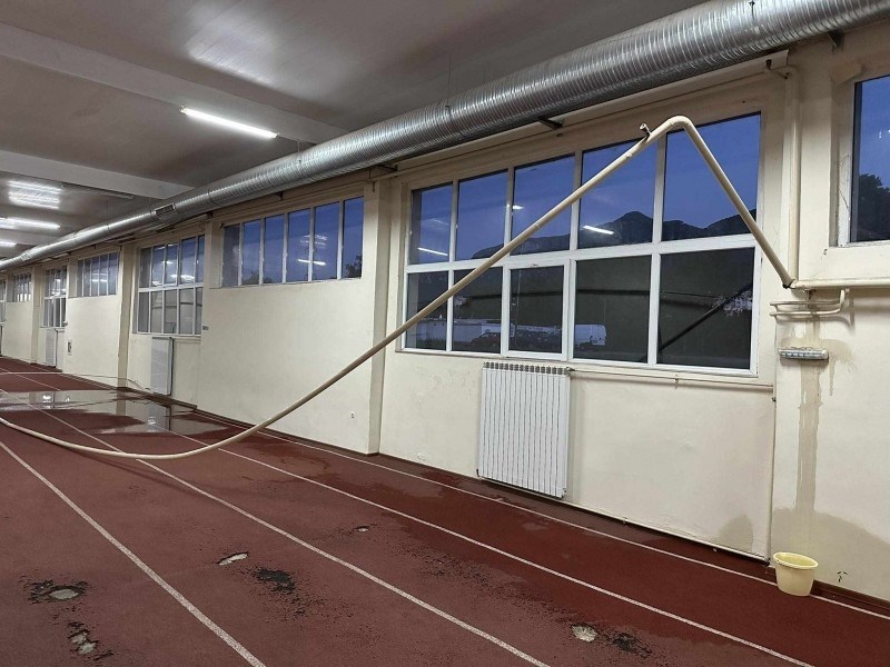 Докато състезатели от СКЛА „Ивайло Младенов“ тренирали в залата, тръбите от отоплителната инсталация се срутили.