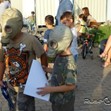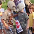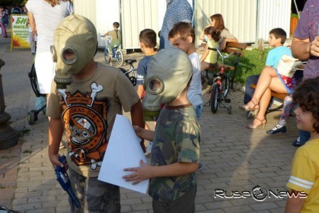 Родители сложиха на децата си противогази, за да напомнят големите хлорни протести на майки с колички отпреди 30 години.