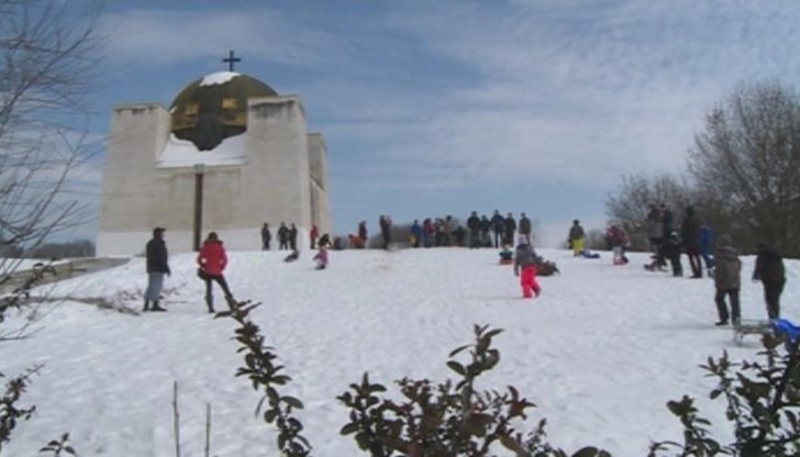 Десетки русенски деца вече няколко дни окупират района на Пантеона на възрожденците. На импровизираната пързалка се носи весела глъч и забавлението расте с броя на малчуганите.