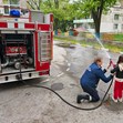 Най-смелите представители на детската градина дори успяха да се превъплътят в ролята на пожарникари, макар и за кратко време. Те имаха възможност да разгледат отблизо пожарния автомобил и да се запознаят с част от оборудването, което спасителите използват при критични ситуации.