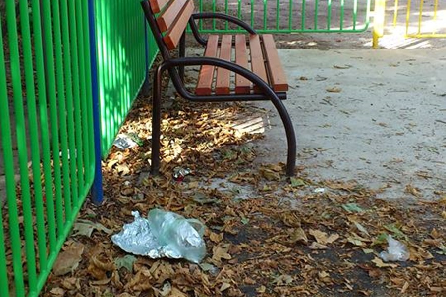 Снимките са от площадката зад покрития пазар, правени са в понеделник вечер, сутринта когато минавах покрай площадката всичкият боклук беше навсякъде из площадката, както се вижда, вятърът го е посъбрал малко. Не снимах кошчетата, защото тогава бяха празни, но на другият ден вече преливаха, едно и също шише от бира стои най - отгоре на единия кош вече няколко дена, другият отдавна е попрелял. Чудех се :