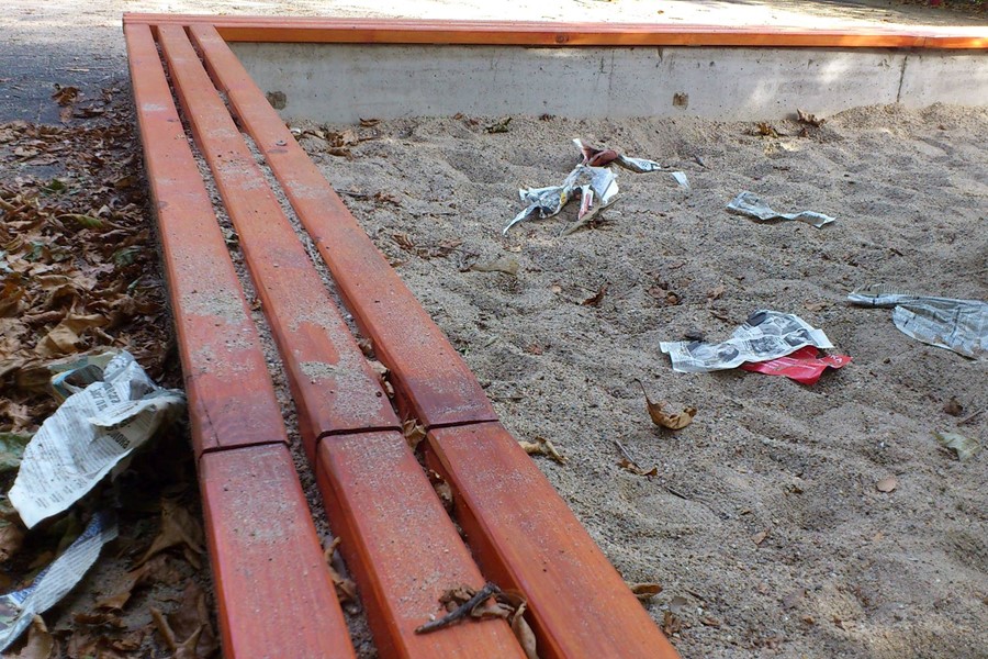 4. Кой измисли оградата на площадката да е с дупка отдолу, за да могат да минават животните да пикаят и а*ат в пясъка ?