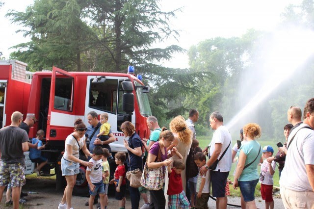 Голям интерес за децата предизвика и оборудваният пожарен автомобил, също в Парка на младежта. Екипирани огнеборци и спасители от Регионална служба „Пожарна безопасност и защита на населението“ демонстрираха как действа съвременната техника и оборудването, а малчуганите ентусиазирано влизаха в ролята на пожарникари.