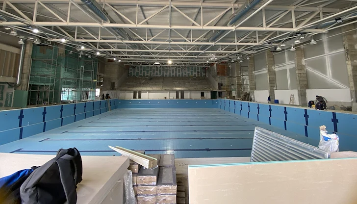 Мащабният проект за нов плувен комплекс в Парка на младежта в Русе се превърна в декор за класическа документална стъкмистика. Докато по документи строежът е официално спрян още в края на миналата година, на обекта продължава да се работи нелегално. Тази схема реално спасява фирмата изпълнител от плащането на тежки неустойки за забавяне, докато русенци плащат над 50 000 евро всеки месец за кредита на недовършеното съоръжение. За абсурда алармира общинският съветник Деян Герасимов, който извърши внезапна проверка на място.
