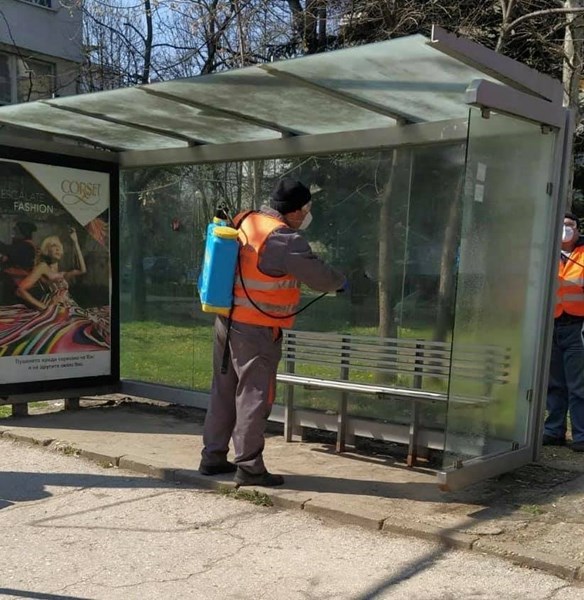 Продължава дезинфекцията на обществените пространства в Русе от служителите на ОП “Паркстрой – Русе“.