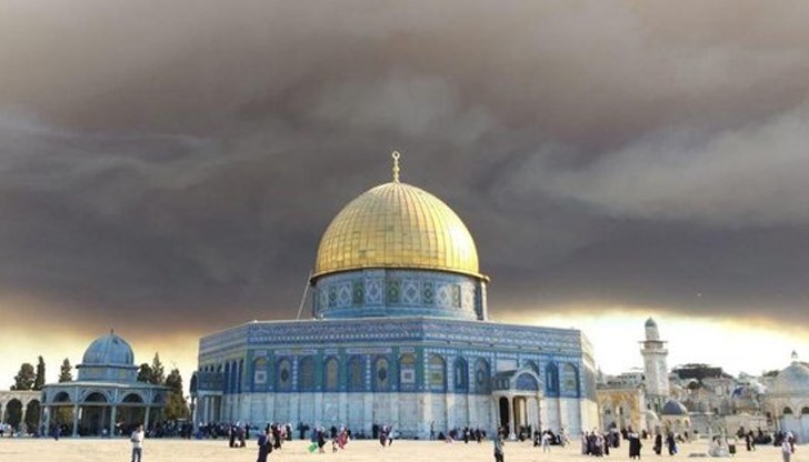 Thick clouds of smoke cover the sky above the Dome of the Rock as a result of the outbreak of huge fires outside Jerusalem.