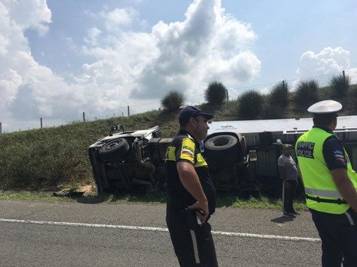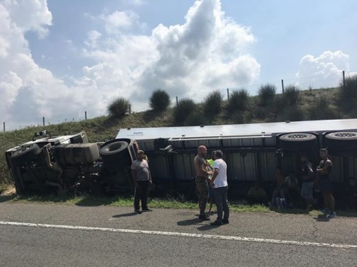 Самокатастрофирал ТИР, превозващ зърно, затрудни движението в посока Бургас, в района на 339 км.