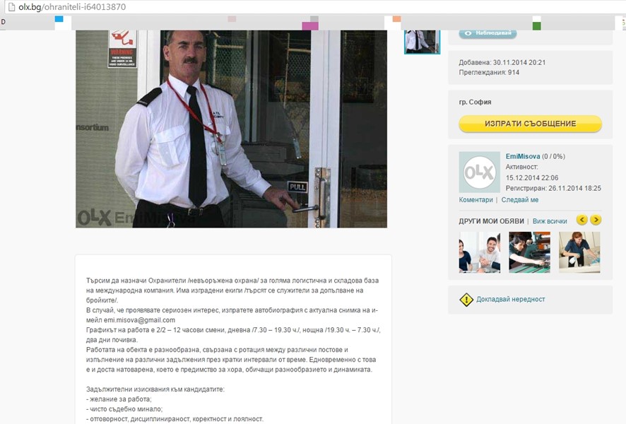 Другото интересно около вече прословутия имейл [email protected] е, че от него пускат и обяви за охранители, а когато желаещи се свържат с въпросните работодатели те отново им предлагат офертата за издаване на дипломи.