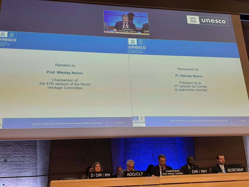 Информационна среща за предстоящата 47-ма Сесия на Комитета за световно наследство се проведе в централата на ЮНЕСКО в Париж. Водещ на срещата бе директорът на Регионалния исторически музей в Русе проф. Николай Ненов, който е председател на 47-та Сесия на Комитета за световно наследство.