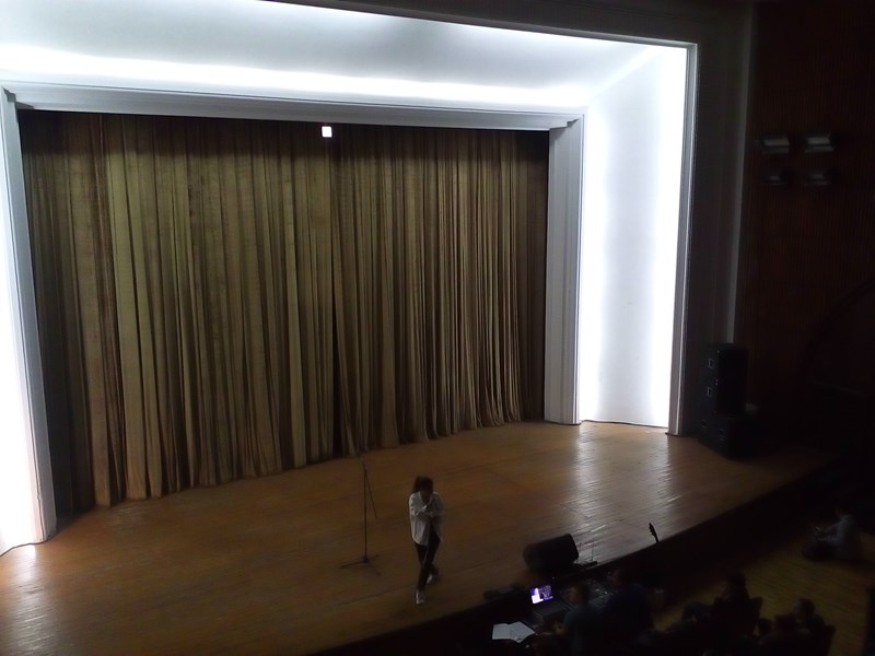 Тя се изправи през пълна зала и стотици души публика, за да подкрепи благотворителна инициатива за тежкоболни учители от ОУ "Любен Каравелов" - Елена Павлова и Стефан Петров.